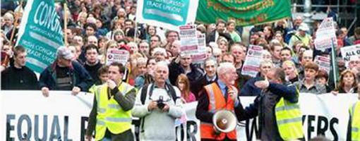 ایرلند در روز سه شنبه ٢۴ نوامبر شاهد اعتصاب یکپارچه ٢۴ هزار کارگر در بخش های موسوم به « خدمات» بود. اعتصاب در اعتراض به طرح دولت برای کاهش حقوق بازنشستگان کارگر در بخش های یاد شده آغاز شد و تا ٢۴ ساعت ادامه یافت. پیشینه ماجرا به سال قبل باز می گردد. با اوج گیری بحران در آن روزها، دولت طرحی را تصویب کرد که به موجب آن دستمزد کارگران بازنشسته بخش های « خدمات» ١٠ درصد کاهش می یافت و همزمان هر نوع افزایش حقوق آنان برای مدتی نا معلوم و نامحدود ممنوع می شد. با اعلام طرح، فریاد خشم و اعتراض کارگران از همه سو بلند شد و اتحادیه کارگری زیر فشار گسترده و خشمگین توده های کارگر مجبور شد که دستور اعتصاب سراسری را صادر کند. موج عصیان کارگران و اقدام اتحادیه دولت ایرلند را به دست و پا انداخت. سران دولت مطابق معمول روند مذاکرات، ترفند پردازی ها و توطئه گری های مشترک میان اتحادیه و خود را شروع کردند. این توطئه ها به سرعت به ثمر نشست.